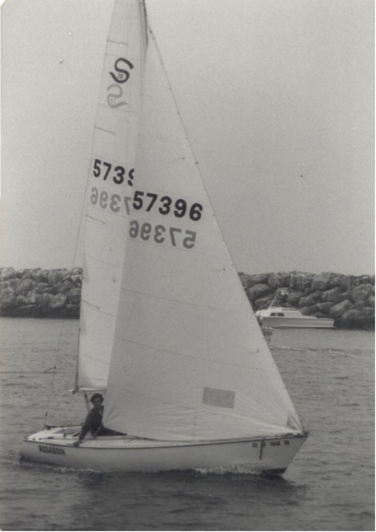 I raced sail boats in Marina Del Rey, California for about 25 years. During that time I won several Fleet and District Championships and two National Championships. The boat pictured here is my Santana 20, named "Assassin". It was built by Shock Boats in Costa Mesa and was a great favorite of mine. I won countless events with this boat including the Fleet Championships with top crew Sam Crawford, some of the district special events, but never the Nationals. Assassin was featured in a top racing & sailing magazine in 1977, and an article was included in the new owner's package from the manufacturer on the special methods and tricks I had for racing.