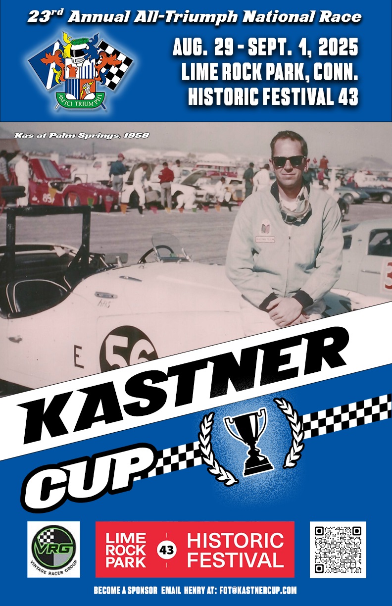 Following the 50th Aniversary of Triumphs in Competition, at Mid-Ohio, Kas Kastner and I launched the 1st Kastner Cup in 2003 at Mosport. Subsequently, I shadowed him for the selection of the Kastner Cup recipient through the years.Sadly, in April of this year, Kas passed the responsibility of selecting the recipient of the coveted Kastner Cup to me.